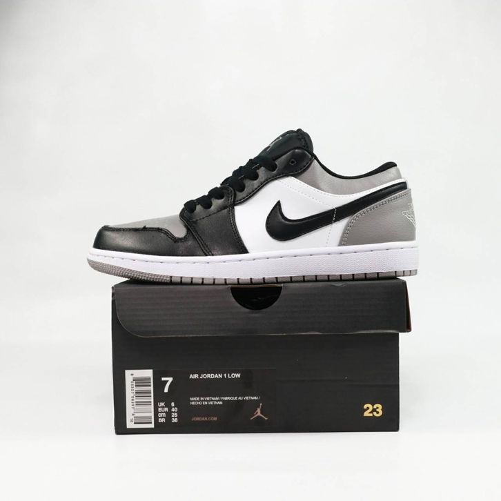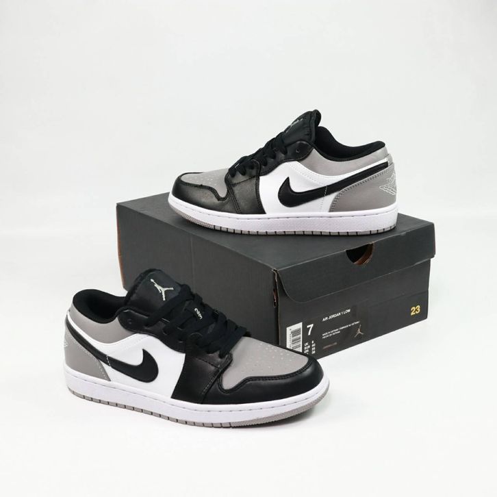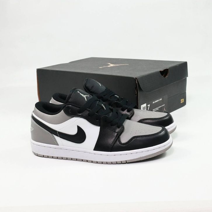 SEPATU NIKE AIR JORDAN 1 LOW BLACK GREY ORIGINAL BNIB FULL TAG BARCODE BAHAN LEATHER KULIT