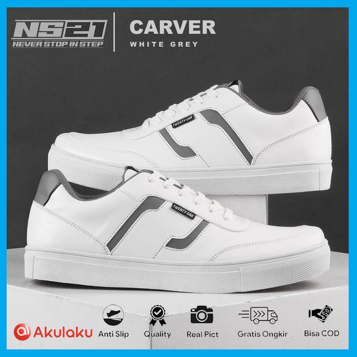 CARVER WHITE GREY | Salisstore - NS21 | Sepatu Pria Sneaker Casual Putih Original
