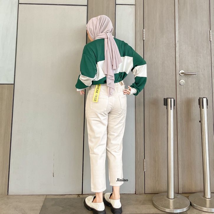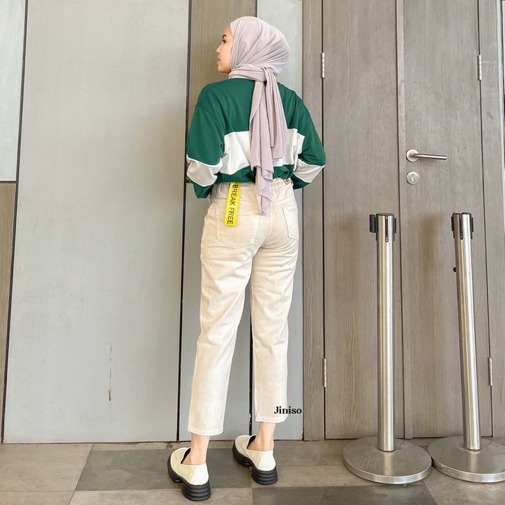 JINISO - Highwaist Mom Jeans Khaki 357 - 367 BREAK FREE - CELANA JEANS WANITA - JINISO OFFICIAL STORE
