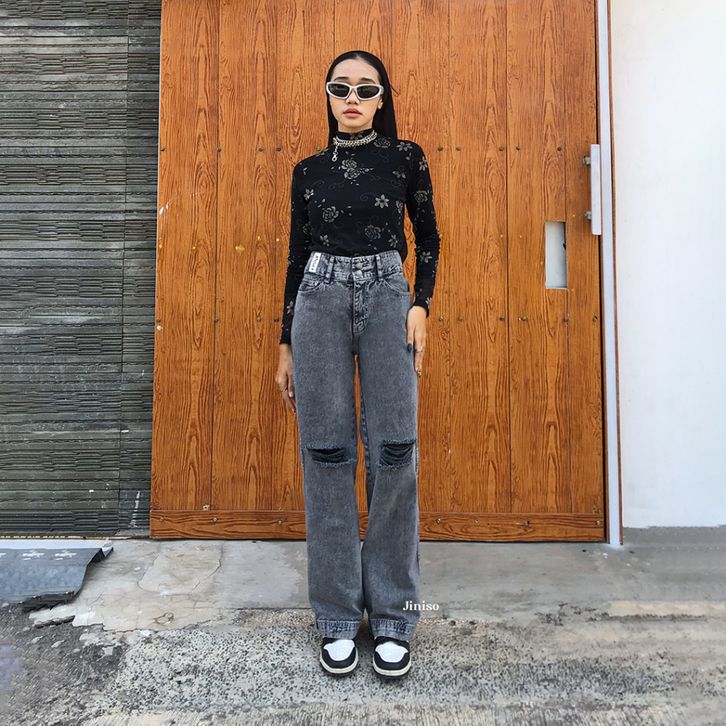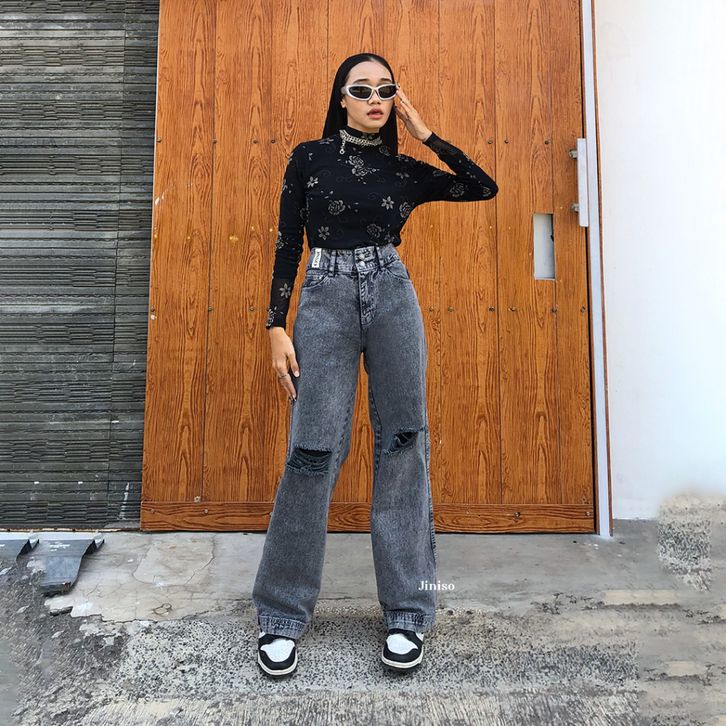JINISO - Highwaist Baggy Ripped Jeans 583 - 593 MYSTIC GAL - CELANA JEANS WANITA - JINISO OFFICIAL STORE