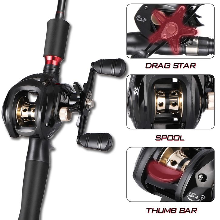 Joran dan Reel 1.8M 2.1M Meter 2 Bagian Casting Fishing Rod dan 18 + 1 BB 7.2:1 Rasio Gear Rem Magnetik Baitcasting Reel