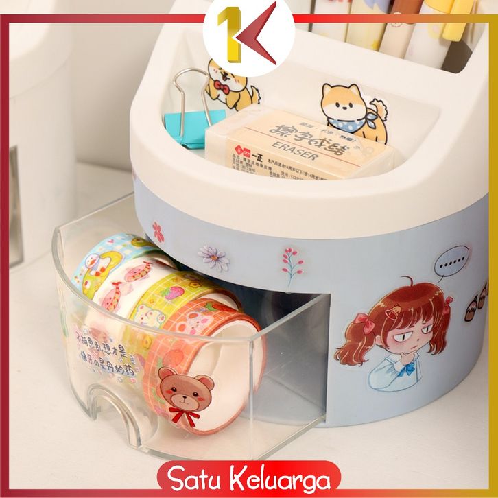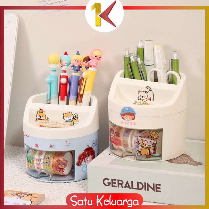 SK-C970 Tempat Pena dengan Laci Desk Storage Organizer Tempat Alat Tulis Aesthetic Lucu / Pen Holder Kotak Penyimpanan