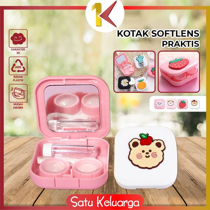 SK-K163 Kotak Tempat Softlens Motif Karakter dengan Cermin Praktis Portable / Mini Softlens Case Tempat Penyimpanan
