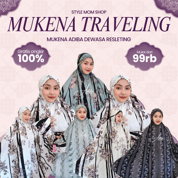 [Mall] Mukena Adiba Dewasa Traveling Motif Terbaru Resleting 2in1 Laser Cut Bahan Katun