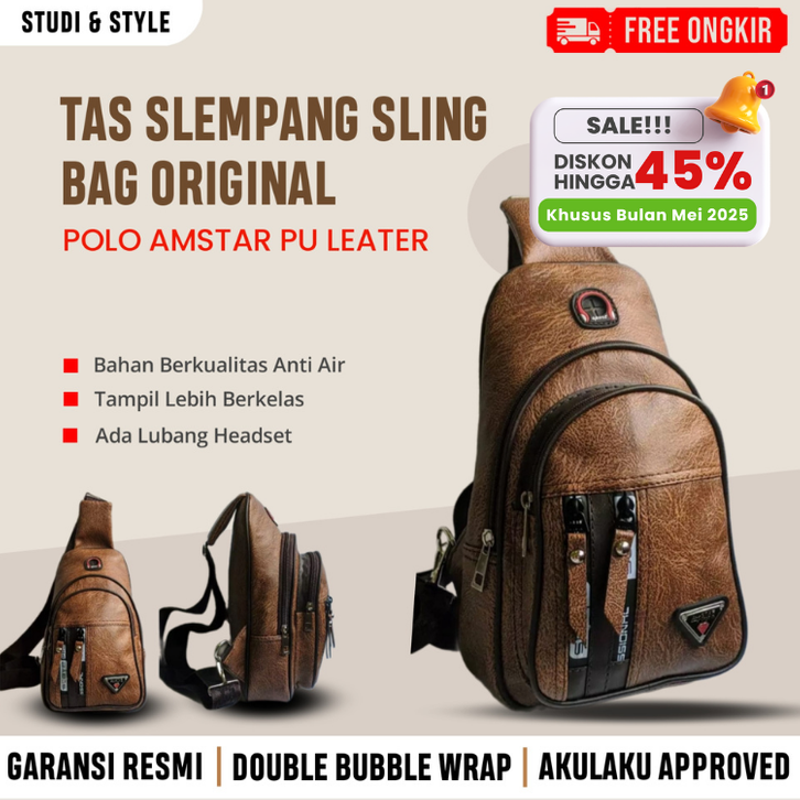 Tas Selempang Pria Original Polo Amstar Tas Slempang Bahu PU Leather Kulit Sintetis Anti Air Waterproof