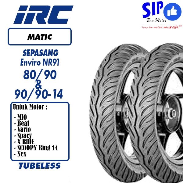 Paket Ban IRC Enviro 80/90 & 90/90-14 Ban Motor Matic Tubeless