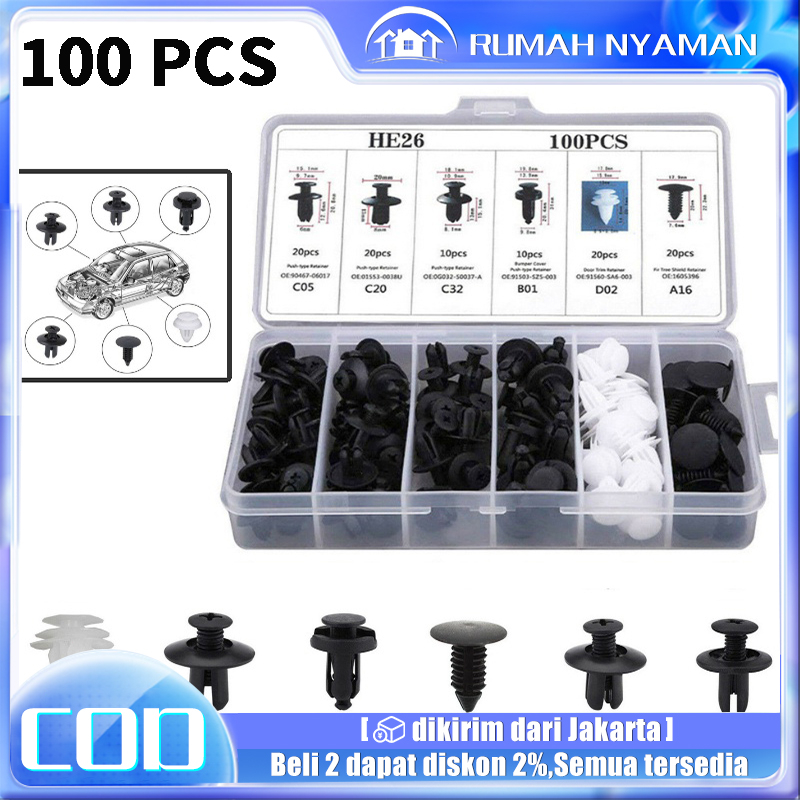 【100PCS】BAUT RIVET MOBIL/UNIVERSAL KLIP BUMPER BAUT BODY PLASTIK MOBIL KANCING PROBOLT CLIP MOTOR SERBAGUNA