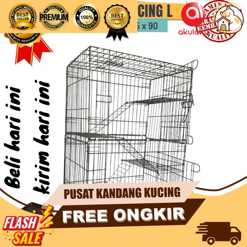 KANDANG KUCING TINGKAT 3 SIZE L 90X60X45 CM + RODA (MUAT 3-4 EKOR KUCING)