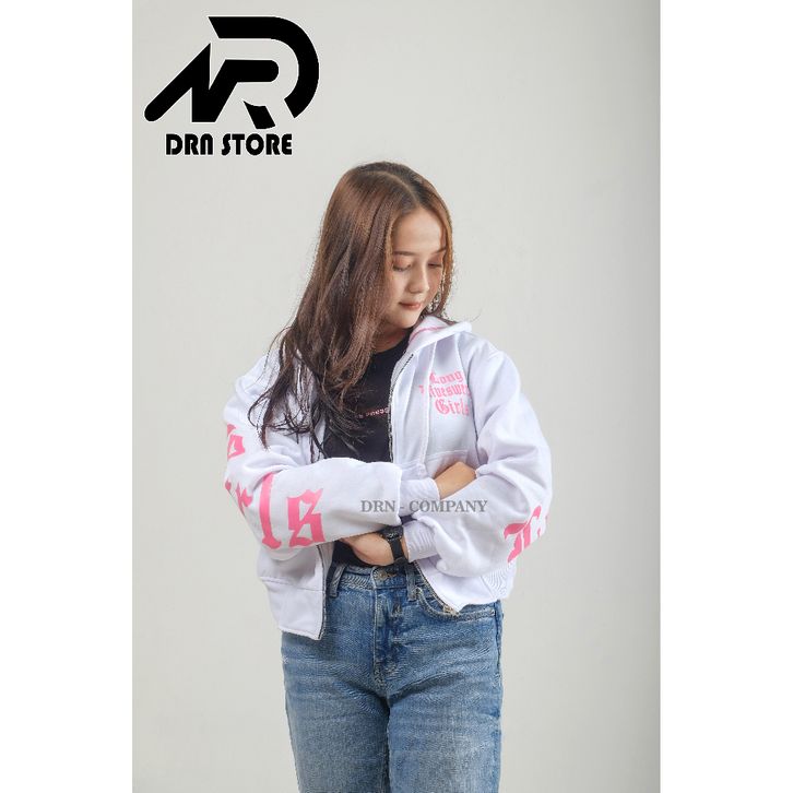 HOODIE WANITA JAKET CROP CEWEK ZIPPER JAHITAN OVERDECK SABLON PLASTISOL PINK STABILO TERMURAH TERLARIS