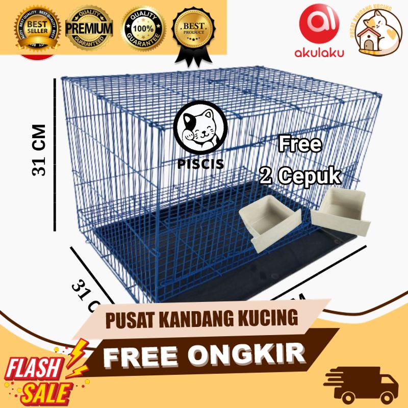 KANDANG SANGKAR KUCING UMBARAN BURUNG MURAH SIZE M MEDIUM FREE 2 TEMPAT MAKAN 45X31X31 KANDANG BESI LIPAT