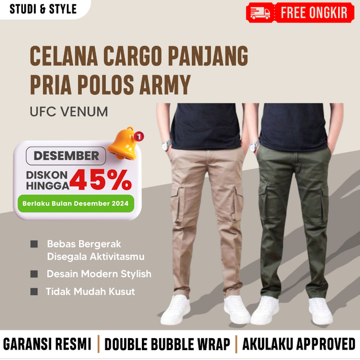 Celana Cargo Panjang Pria Polos Kargo Cowok kekinian Keren Army Loreng Ufc Venum Mma Pantai Gym American Drill Adem