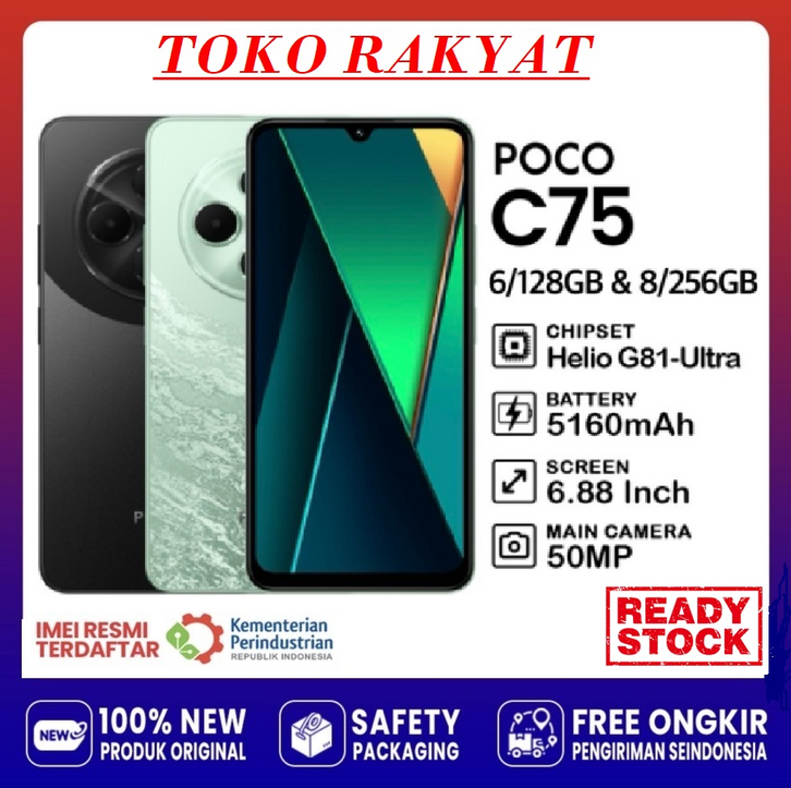 (BEBAS ONGKIR) Hp XIAOMI POCO C75 RAM 8+256GB | Helio G81 Ultra | Camera 50MP | Batery 5160mAh