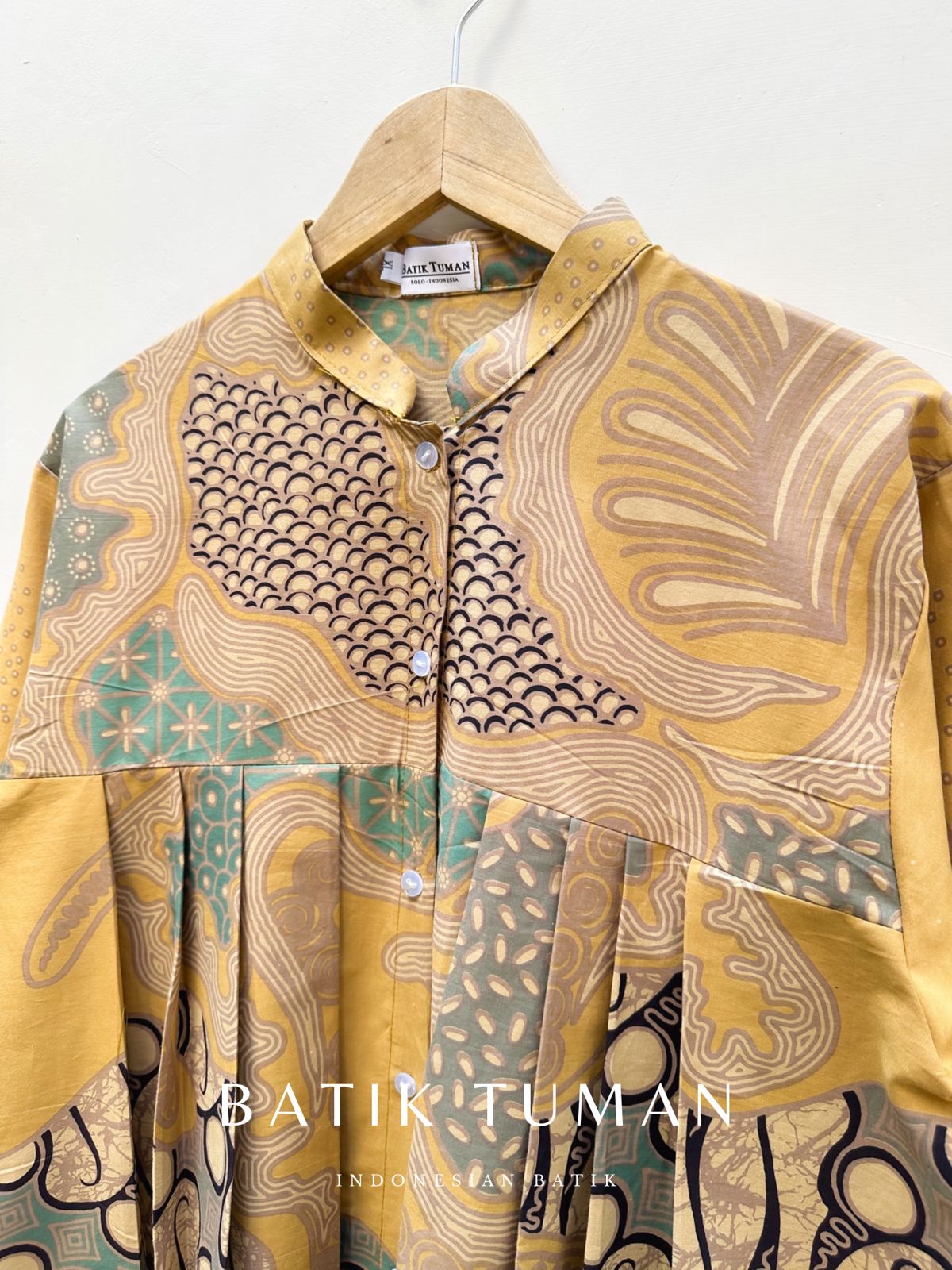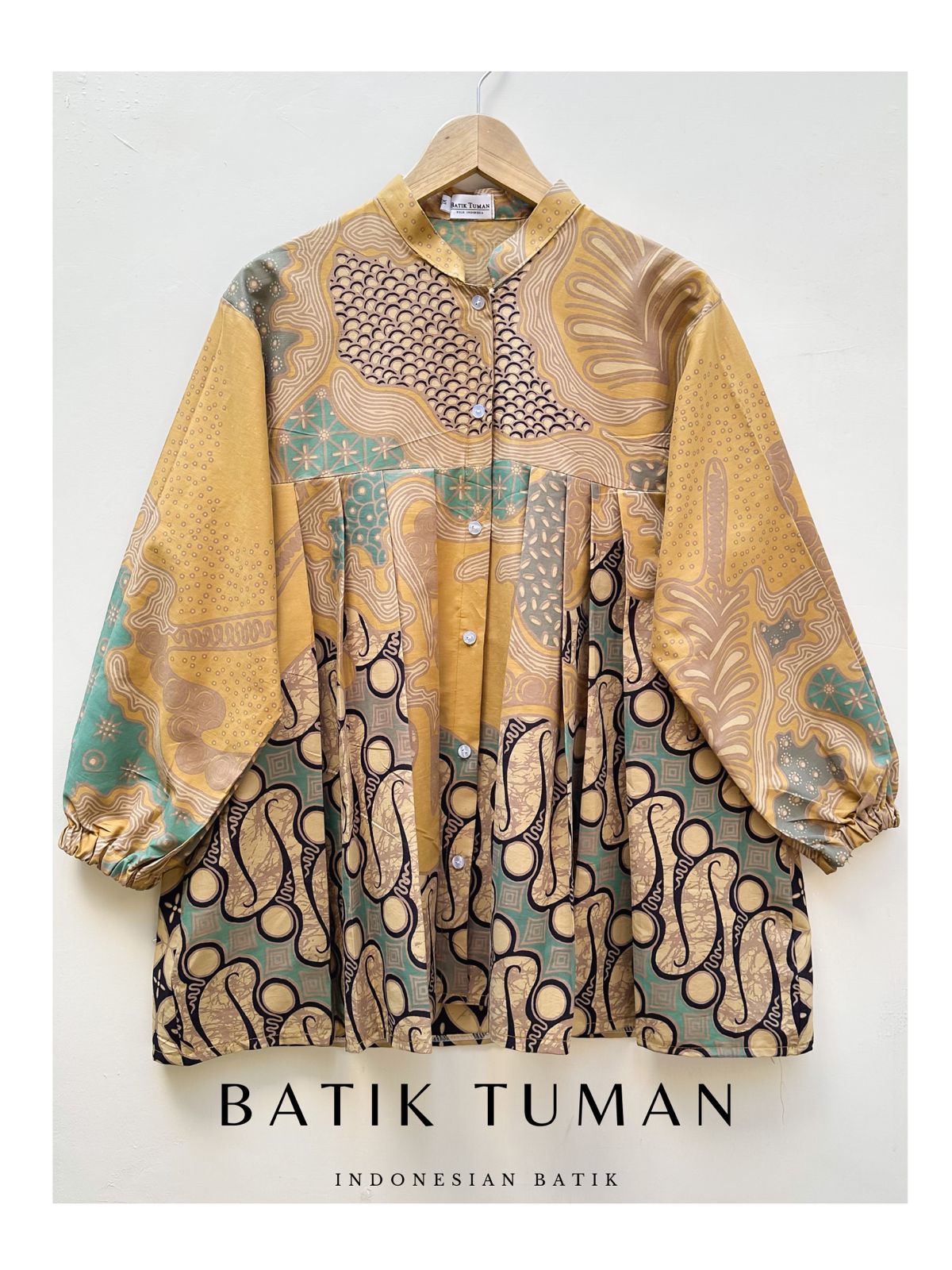 SHANNUM SERIES ABSTRAK WARNA PASTEL YELLOW GREEN BLOUSE BATIK WANITA KATUN HALUS PREMIUM