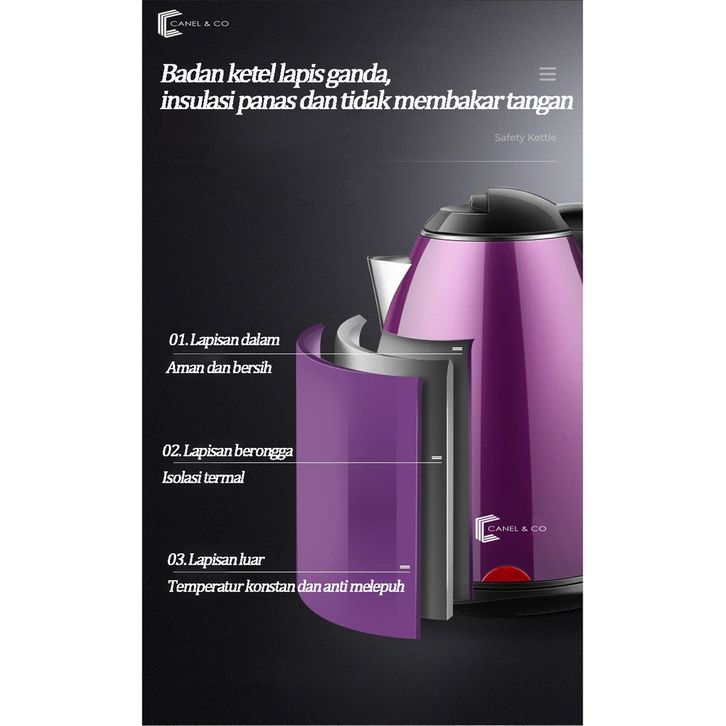 CANEL & CO 650 Watt Teko Listrik Otomatis Stainless Steel 2.0 Liter Teh Kopi Rumah / Panci Listrik / Kompor Listrik / Te