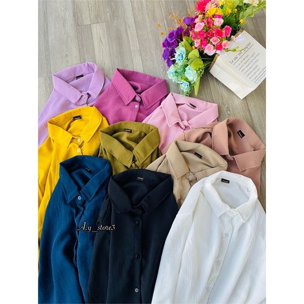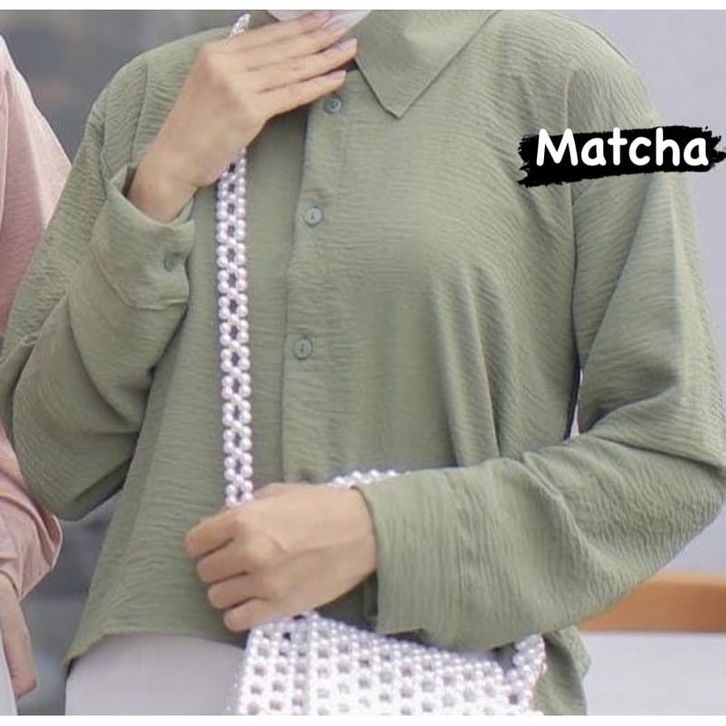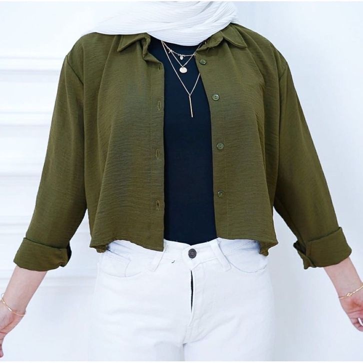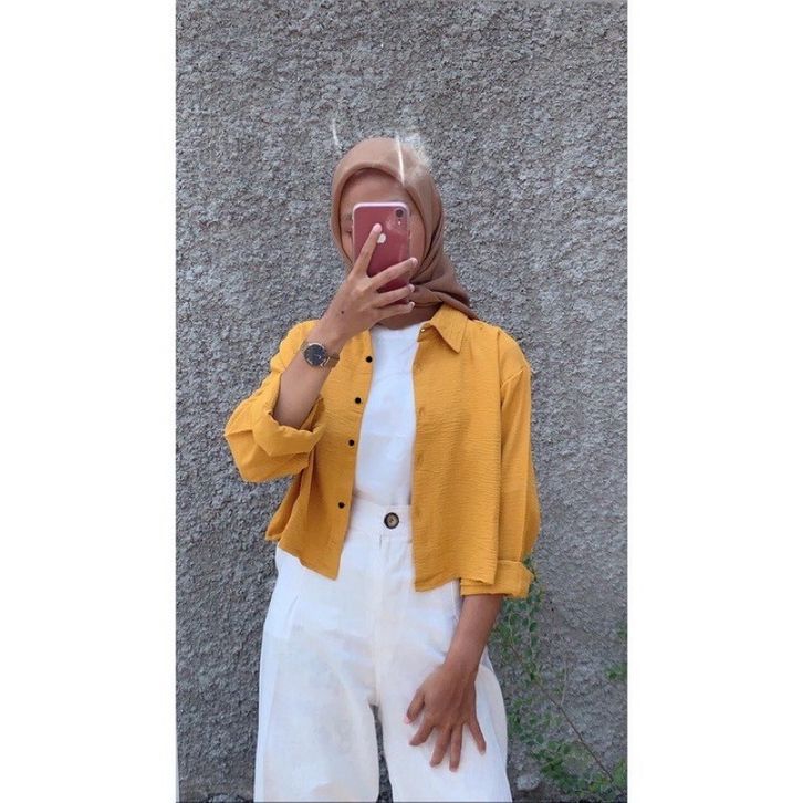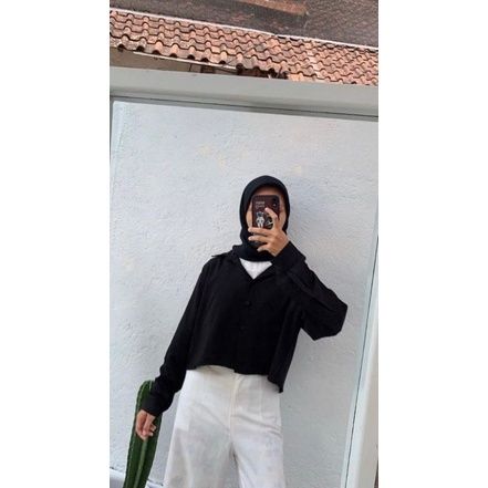 Kemeja Hanin Crop Airflow Crinkle Baju Atasan Crop Lengan Panjang Pakaian Outfit OOTD Stylish Cewek Wanita Trending Kece
