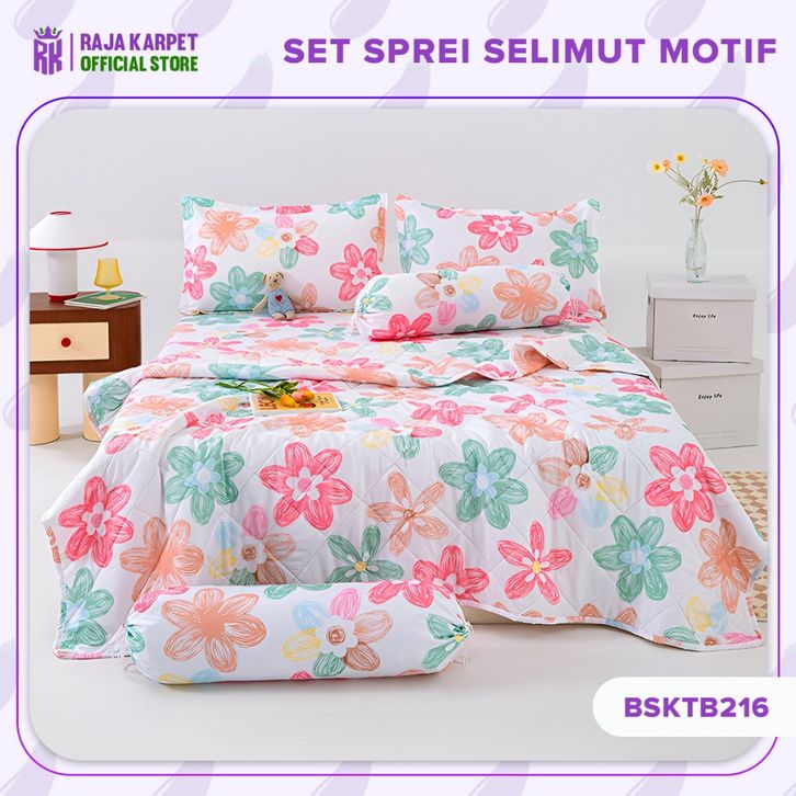 WEMARRY Sprei Set Sarung Bedcover Set dan Bantal Ukuran 180X200 Murah