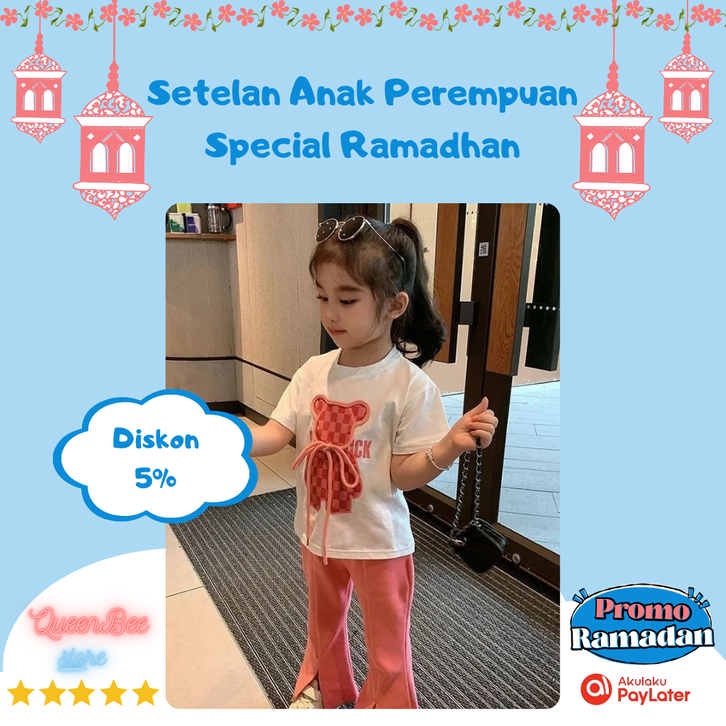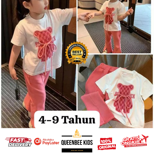 Setelan Anak Perempuan Import / Stelan Anak Cewek Viral / Setelan Anak Perempuan 2-8 Tahun Bear Pink Cutbray