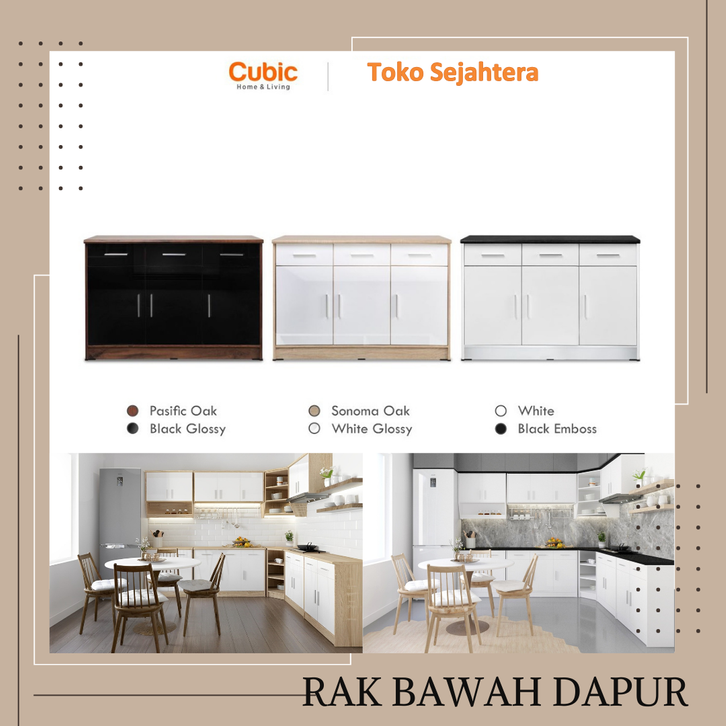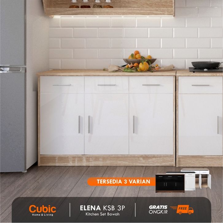 RAK DAPUR SET 3 PINTU MINIMALIS CUBIC KITCHEN RAK BAWAH DAPUR PUTIH / HITAM ( PERLU DIRAKIT )