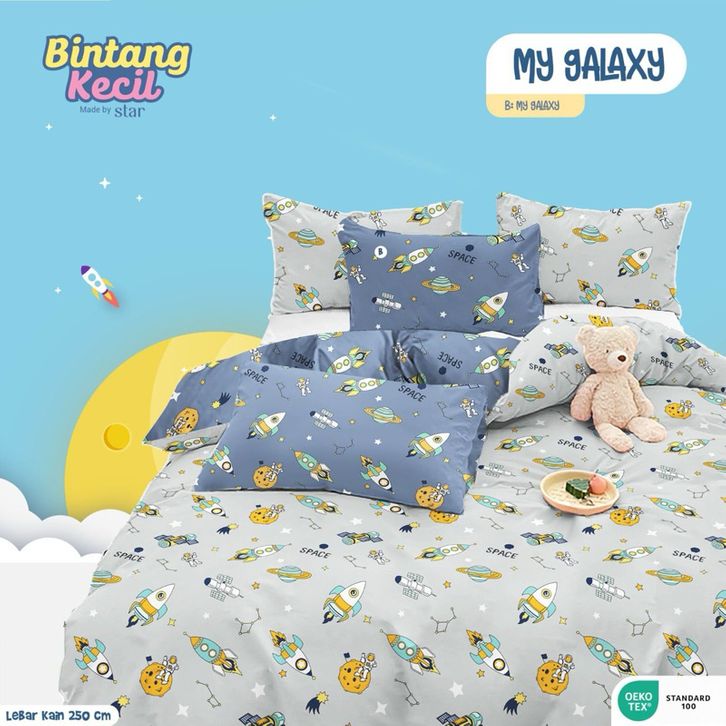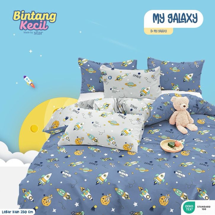Sprei Set Katun Lokal ESRA Motif Appolo Astro Hello Planet Sprei Anak Cowo Galaxy Murah Terlaris