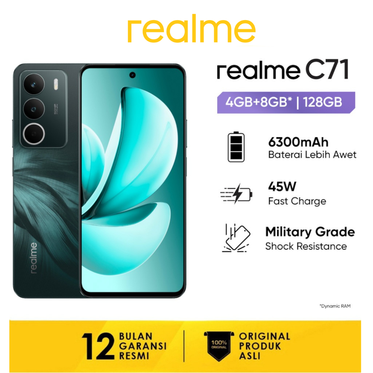 realme C71 NFC 4GB+128GB 6GB+128GB 6300mAh Military Grade Shock Resistance
