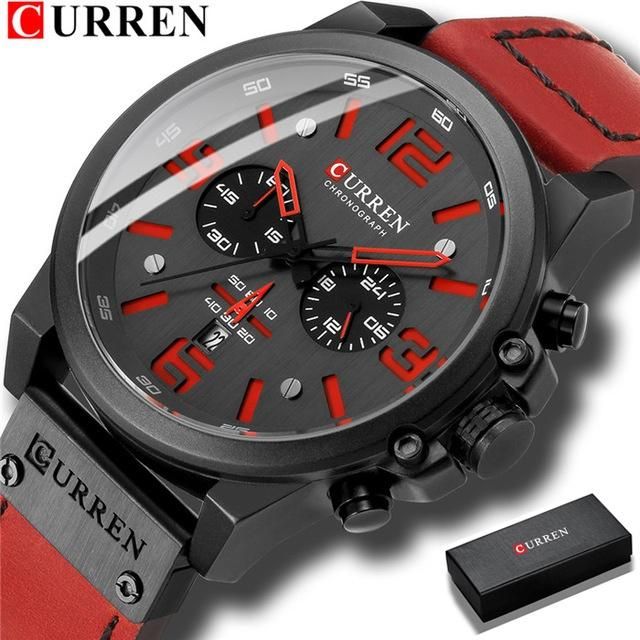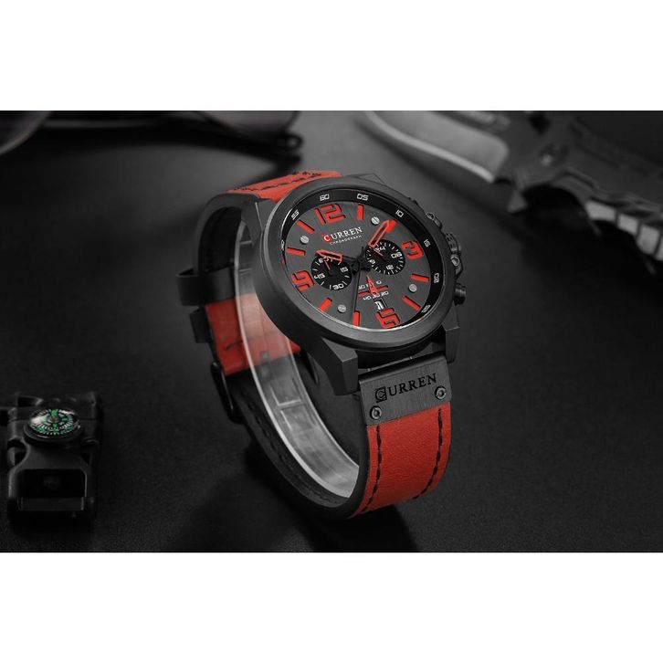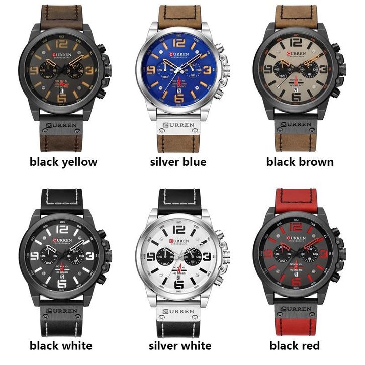 CURREN 8314 Jam Tangan Pria Analog Tali Kulit Chronograph Aktif Jam Kuarsa Kalender Otomatis Tahan Air Militer Pria