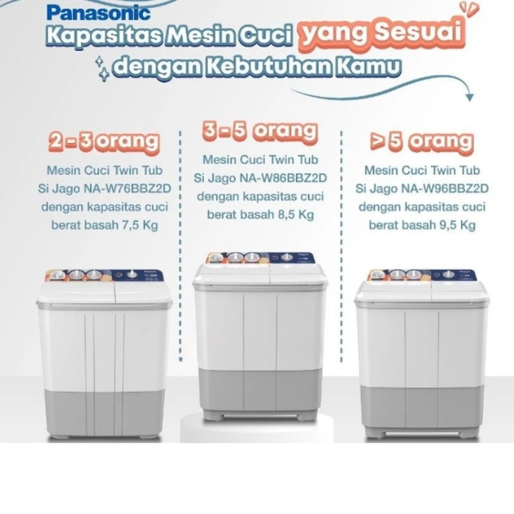 MESIN CUCI 2 TABUNG PANASONIC LOW WATT 7.5 KG NA-W76BBZ2 8.5 KG NA-W86BBZ2 9.5 KG NA-W96BBZ2 MURAH ORIGINAL BEST SELLER