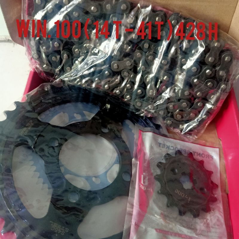 PAKET GEAR SET WIN 100/GEAR PAKET RANTE WIN 100/CHAIN KIT WIN 41T-14T/GIGI TARIK WIN100 PLUS RANTAI