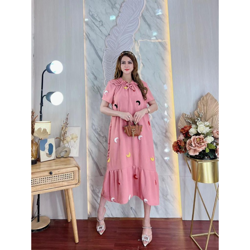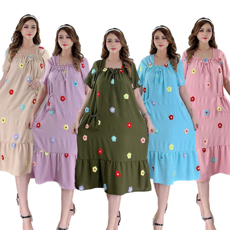 DASTER ANDIN ARAB FUJI DRESS || BAHAN CRINKLE PREMIUM || MODEL KERAH SMOKE BUMIL LD 110