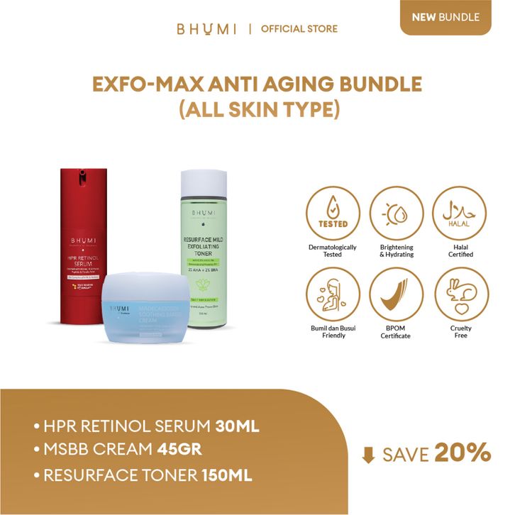 HPR 30ml , HPR 18ml, Bakuchiol Night Oil 30ml , Bakuchiol Night Oil 10ml, Perfect Pair Anti Aging 18ML, Bright Core Anti Aging, Flawless Retexturing Bundle, Perfect Pair Anti Aging 30ML, Core Anti Aging Normal Skin, Core Anti Aging Acne Skin, Set Anti Aging, Essential Core Treatment Anti Aging, Set Anti-Aging Barrier Bright +, Set Revitalizing Barrier Bright+, Golden Standard Anti Aging, Exfo-Max Anti Aging Bundle, Essential Care Post Acne Scar Normal Skin, Essential Care Post Acne Scar Acne Skin, Essential Care Anti Aging Acne Skin, Essential Care Anti Aging Normal Skin