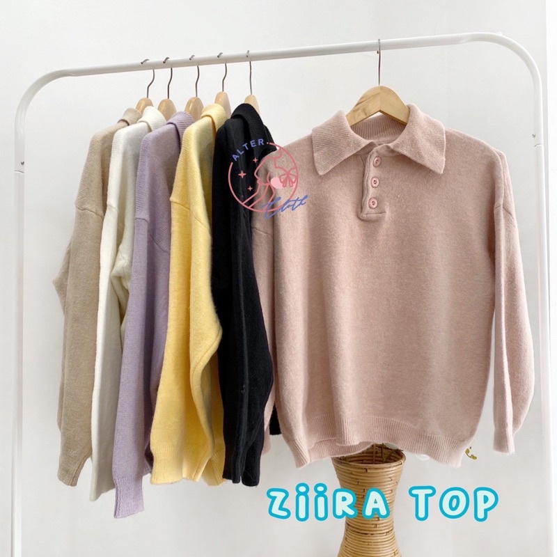 ALTER.CLOTH - ZIIRA T0P | ATASAN KAOS WANITA POLO KERAH KOREA LENGAN PANJANG KNIT WOOL IMPORT
