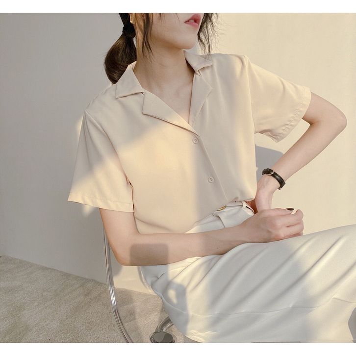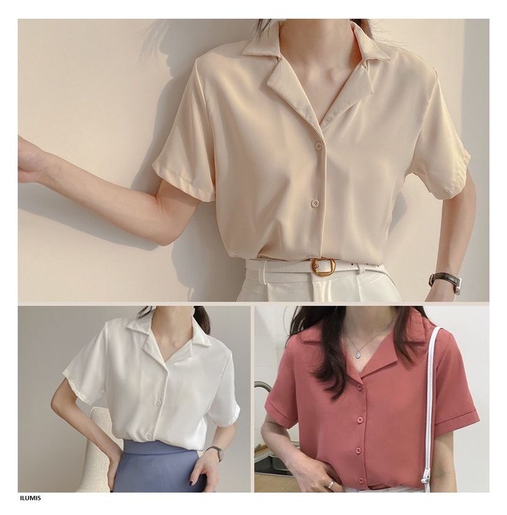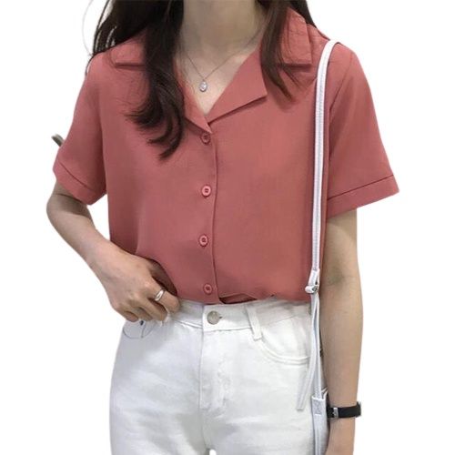 KEMEJA ATASAN WANITA KEMEJA KOREA RETRO LENGAN PENDEK BAJU WANITA FORMAL CASUAL POLOS PAKAIAN PEREMPUAN TERLARIS