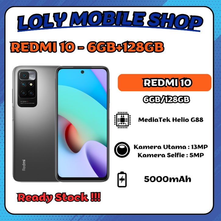 HP XIAOMI REDMI 10 - 6GB/128GB | MediaTek Helio G88 | 5000mAh Fast Charging | Original Garansi Resmi 12 Bulan.