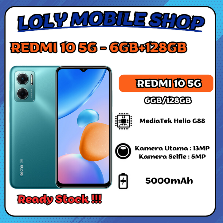 Xiaomi Redmi 10 5G 6GB/128GB | MediaTek MT6833 Dimensity 700 | Li-Po 5000 mAh fast charging 18w | Garansi 12 Bulan.