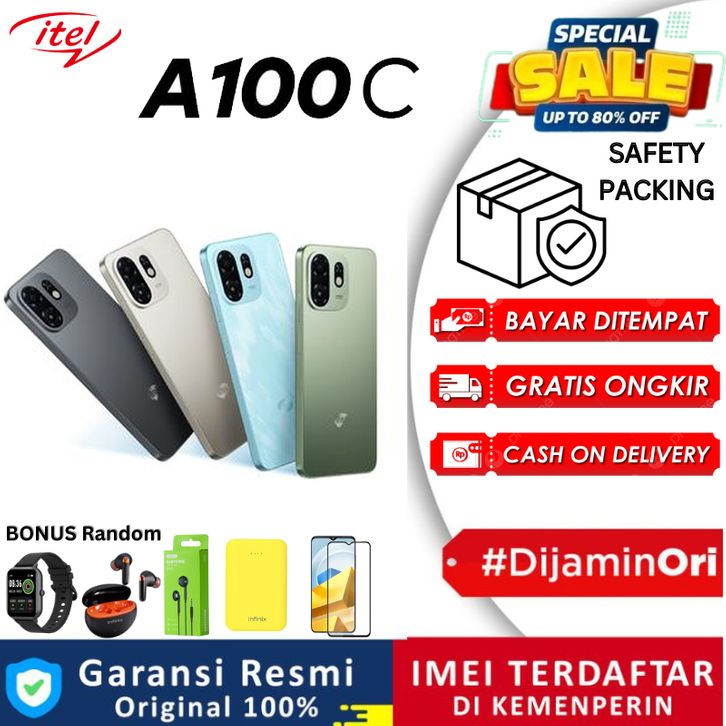 [Official Store✔] itel A100C 4/64GB Layar 6.6" 90Hz Tahan Banting Military-Grade Big Memory UltraLink Free Call 5000mAh