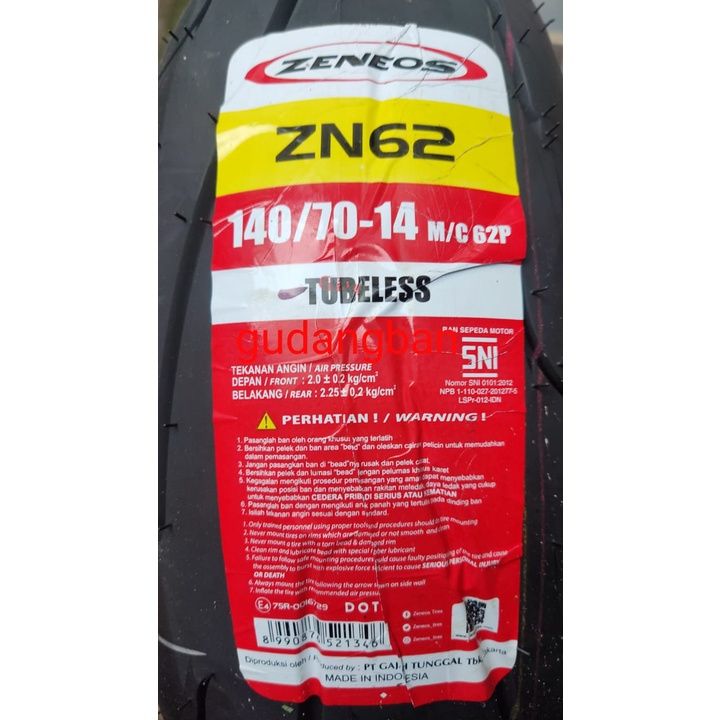 ZENEOS ZN62 140/70 -14 TUBELESS Ban Luar Motor Aerox XMAX FREE PENTIL TERBARU