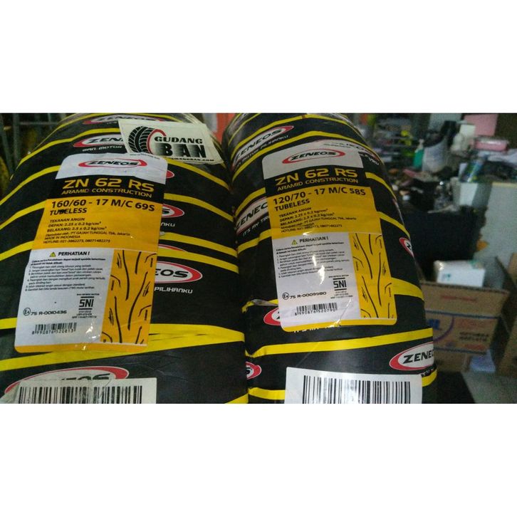 paket ban luar zeneos zn62 uk 120 / 70 -17 dan 160 / 60 -17 VERSI RS TUBLESS free Pentil MOGE