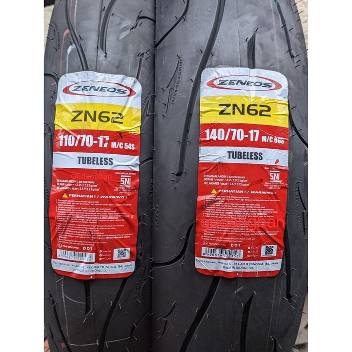 Paket Zeneos 110/70 - 17 dan 140/70 - 17 ZN62 Ban Luar Motor Ninja Moge TUBELESS free pentil