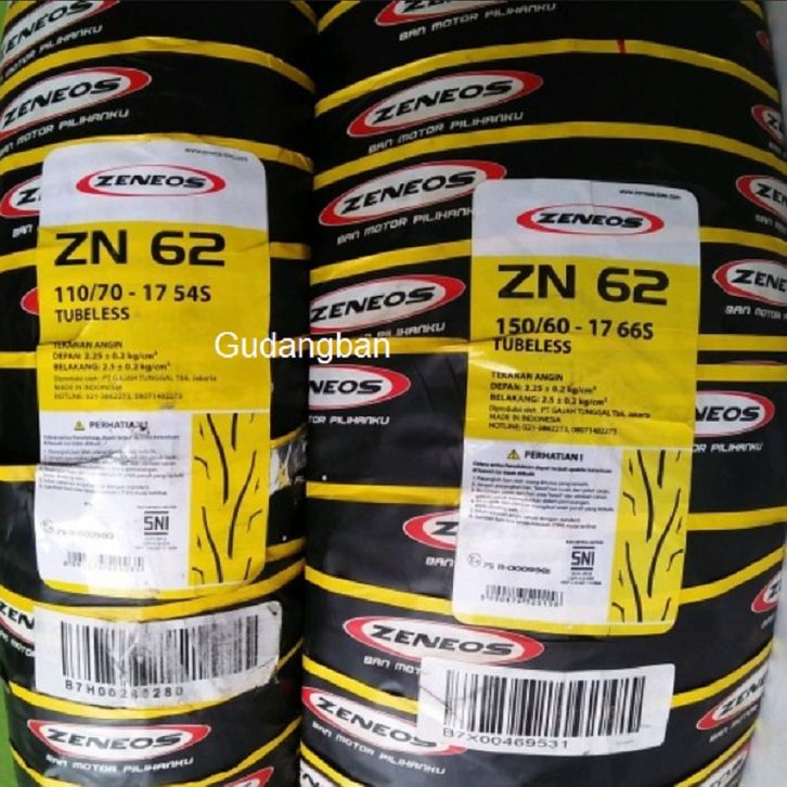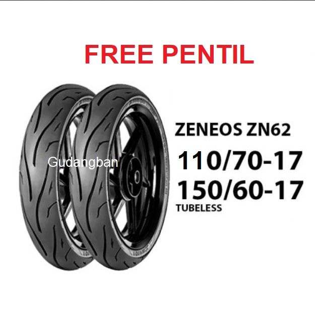 Ban Luar Motor Zeneos ZN62 110 70 17 dan 150 60 17 Tubeless Ninja Vixion CBR Thunder ZN 62 FREE PENTIL