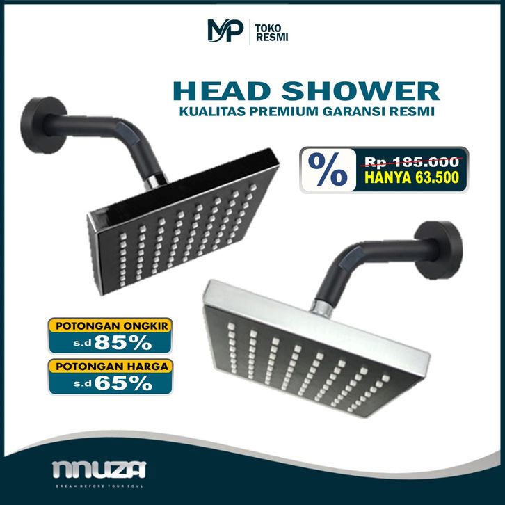 ORIGINAL | Kepala Shower Mandi Bentuk Kotak Hitam / Head Shower DP-145