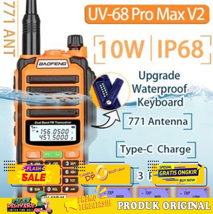 HT UV68 PRO MAX V2 WALKIE TALKIE IP68 10W DUAL BAND USB-C CHARGING