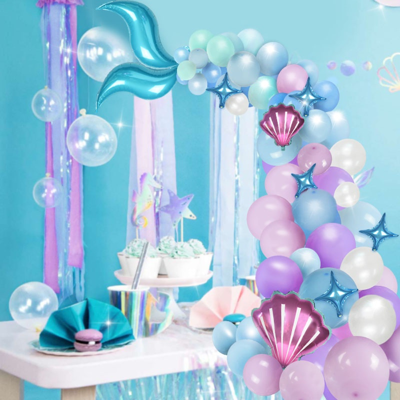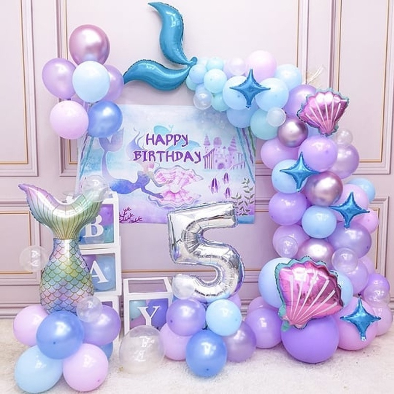 87 Pcs Mermaid theme Garland Arch Balon Ulang Tahun Dekorasi Latex Balon Set Balon Dekor