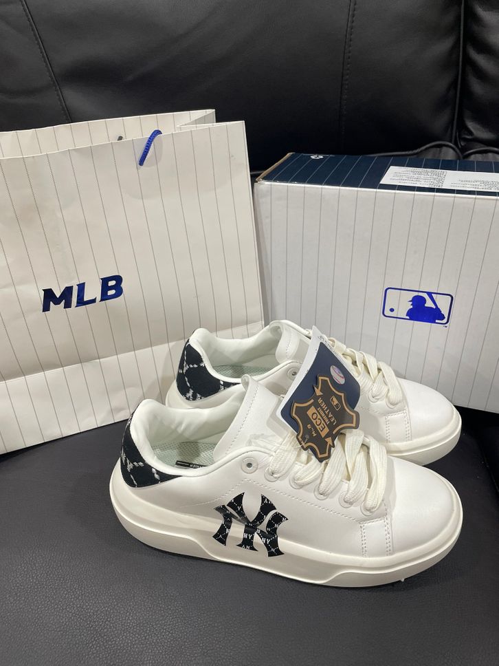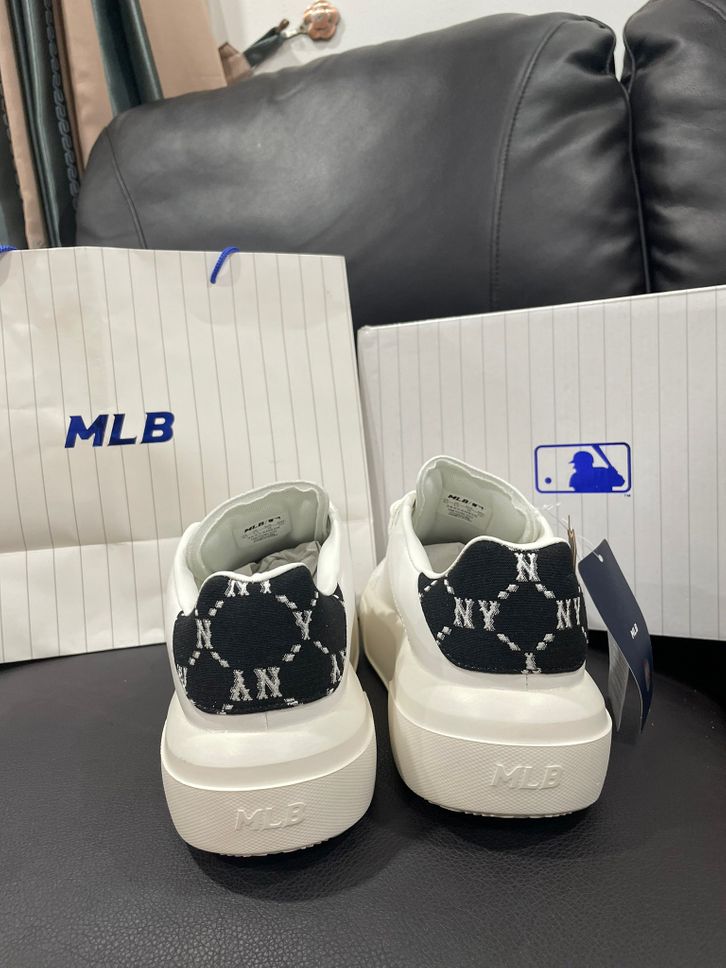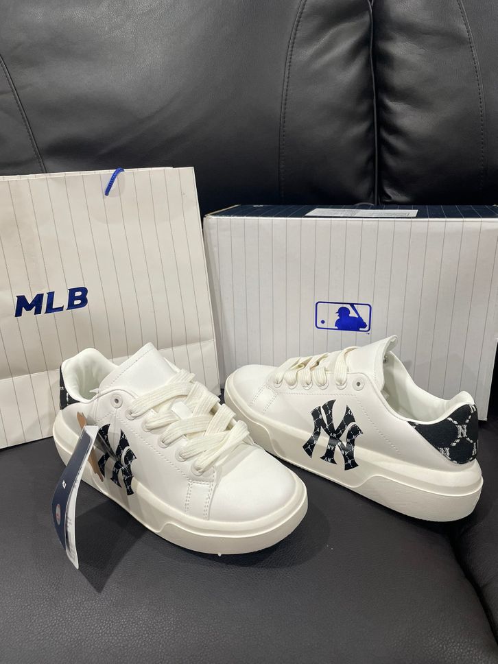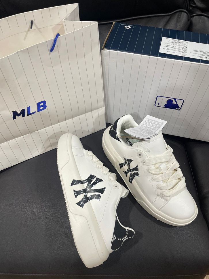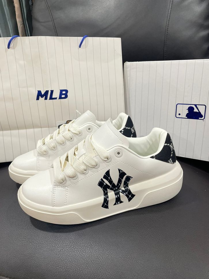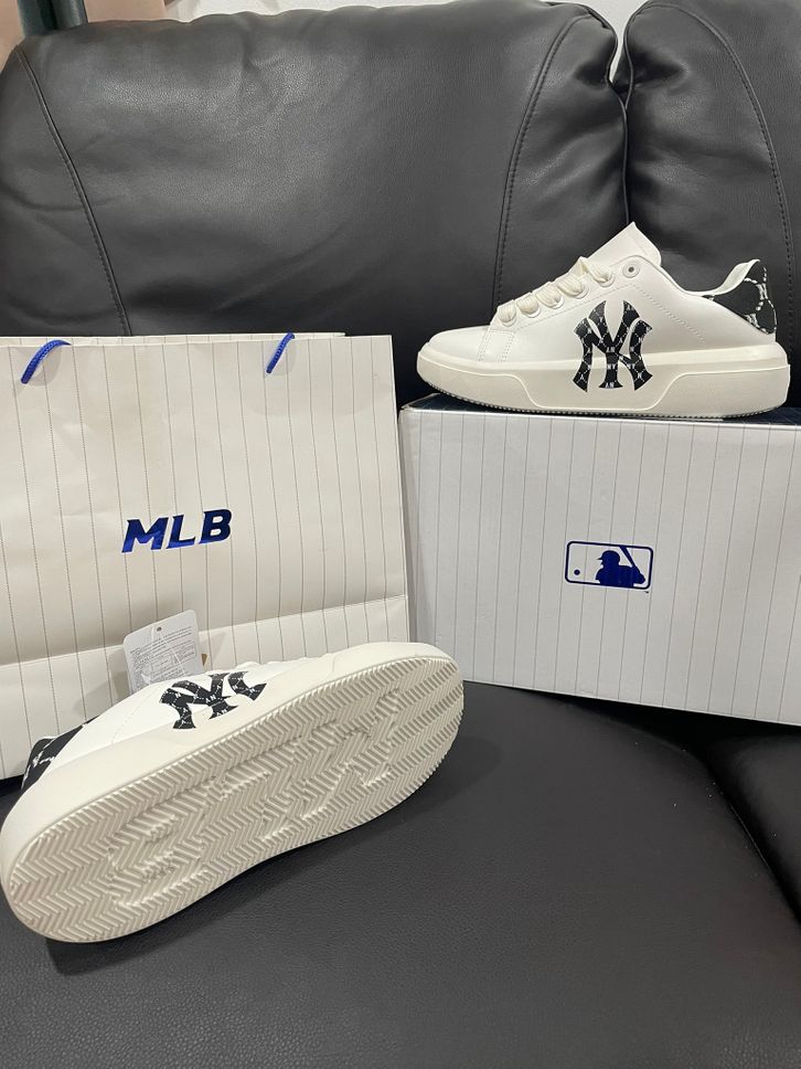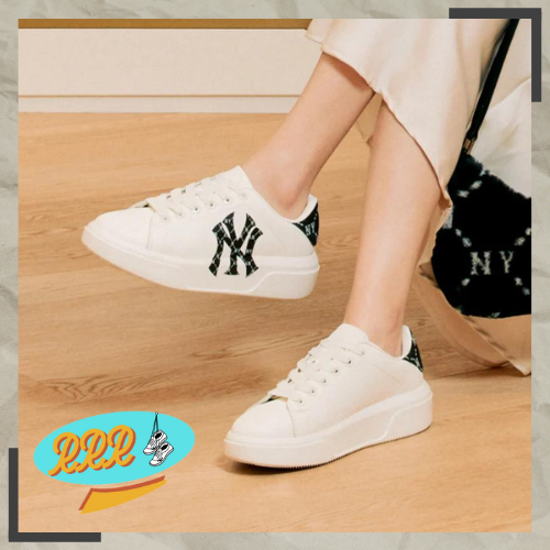 (Gratis Ongkir) Sepatu Wanita MLB NY Yankees Chunky Classic Heel Dia MONOGRAM White Black ORIGINAL PREMIUM