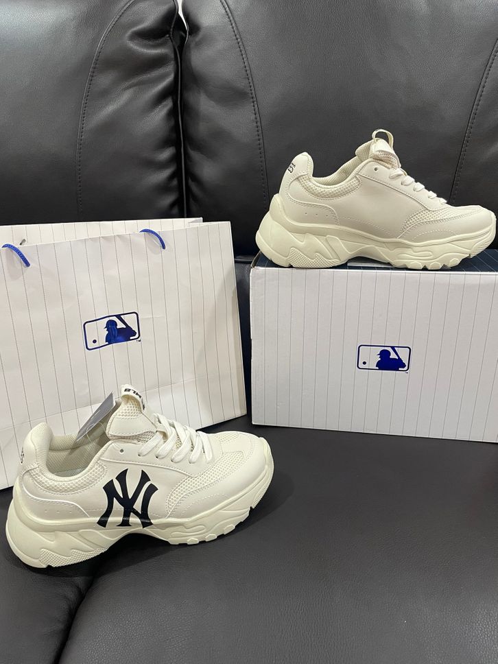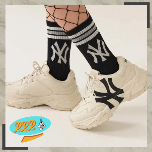 (Gratis Ongkir) Sepatu Wanita MLB NY YANKEES BigBall Chunky Cream Black ORIGINAL PREMIUM