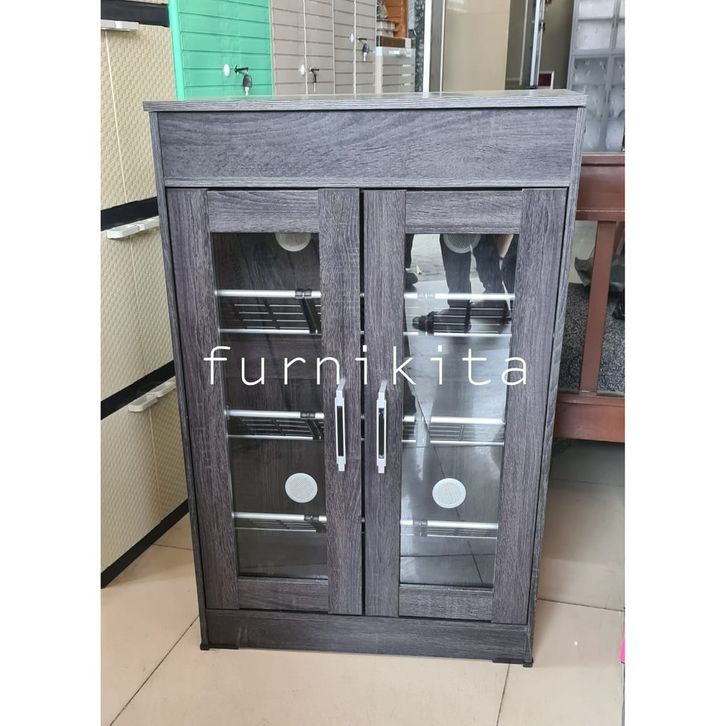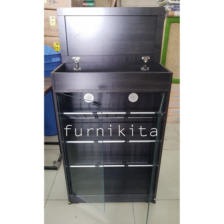 FREE ONGKIR LEMARI RAK SEPATU KAYU DENGAN KACA 12 PASANG DENGAN RAK SERBAGUNA