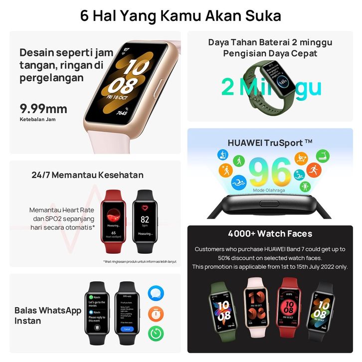 HUAWEI Band 7 Smartband | 9.99mm Ultra-Thin Design | Automatic SpO2 | Daya Tahan Baterai 2 Minggu | HUAWEI SMARTWACH