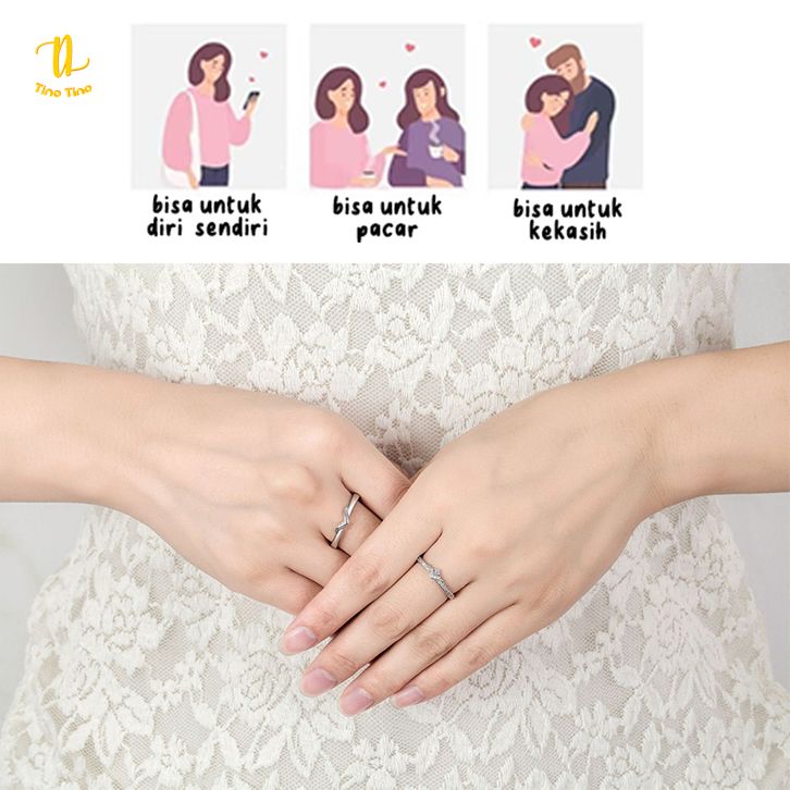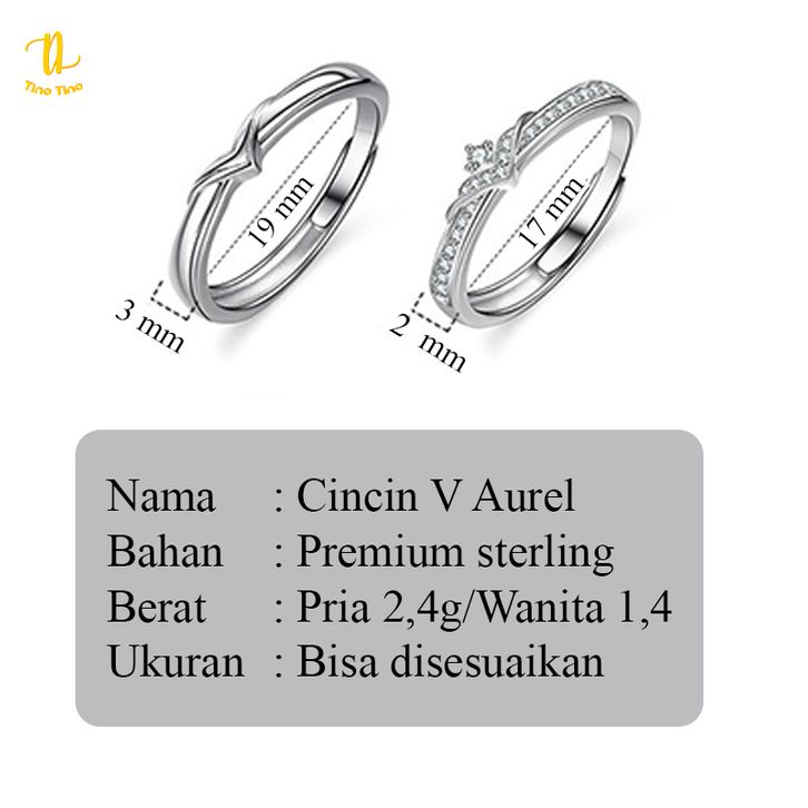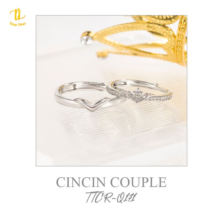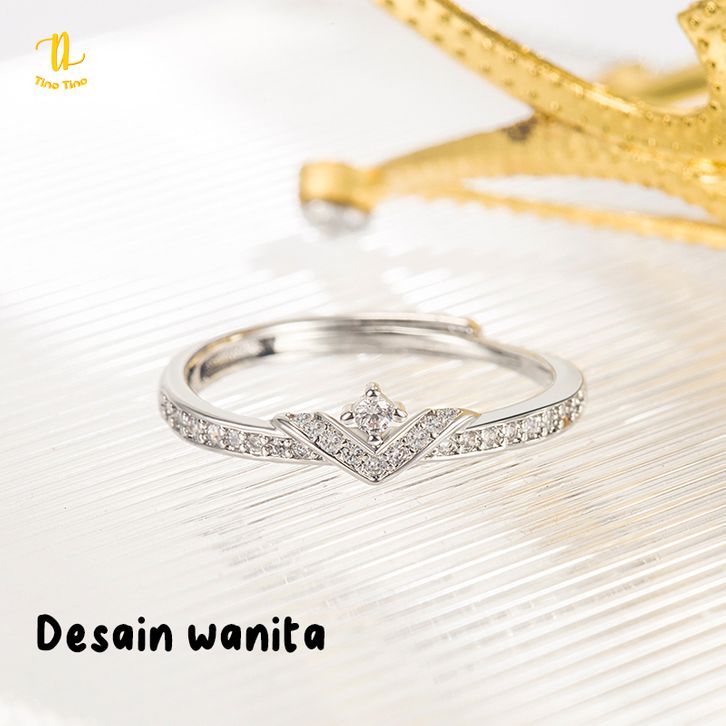 Cincin Couple Titanium Q171 Wedding Ring V Aurel premium Zirconia Cincin Tunangan Nikah