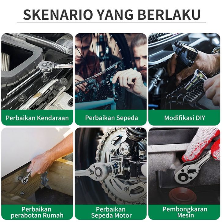 ISKU Kunci Shock Set Kunci Mata Sok 53 Pcs Set Socket 1/4 Full Tool Kit Alat Perbaikan Mobil Set Paket Pas Shok