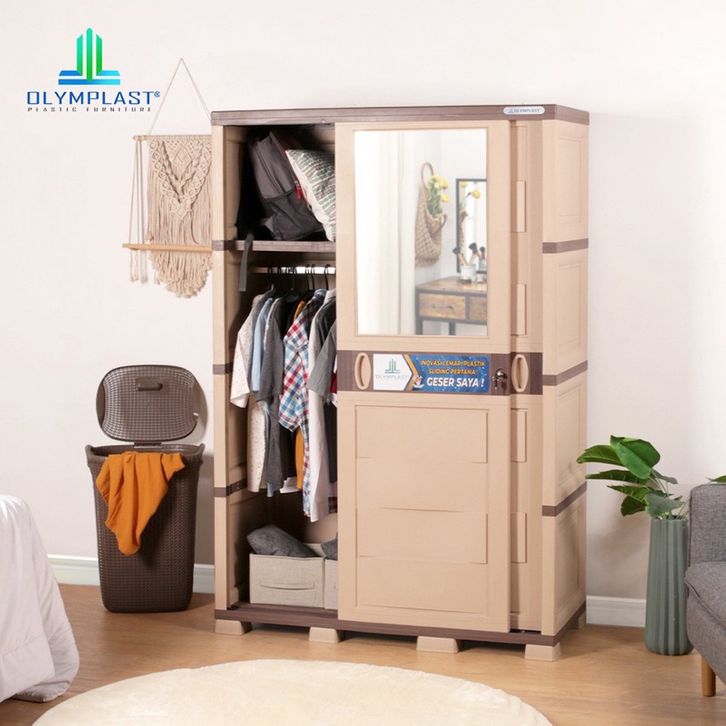 LEMARI OLYMPLAST PLASTIK 3 2 PINTU SLIDING OTC CLASSIC MODERN GANTUNG RAK BAJU PAKAIAN KACA CERMIN JUMBO GESER MINIMALIS