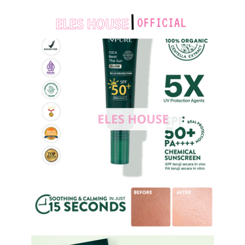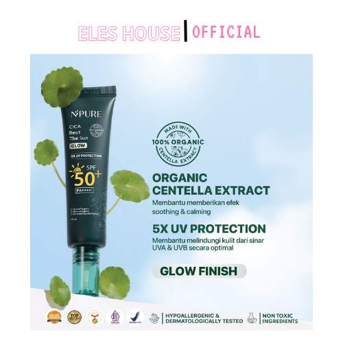 Sunscreen Cica Beat The Sun Glow / Sunscreen Hypoallergenic / SPF 50 PA++++ / Kulit Kering Jerawat - NPURE 35ml
