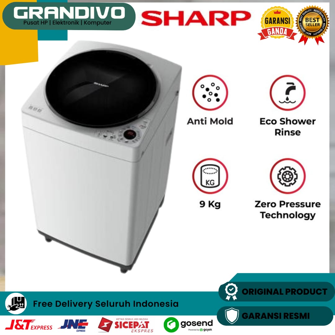 MESIN CUCI TOP LOAD SHARP 9KG ES-M909T-GG ZERO PREASURE ESM909T GARANSI RESMI - GRANDIVO